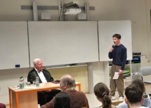 Er erzählte den Zehntklässlerinnen und Zehntklässler aus seinem bewegten Leben, das er nur führen konnte, weil seine jüdischen Eltern ihn in den von Deutschland besetzten Niederlanden an eine befreundete katholische Familie übergaben, die den 1940 geborenen Ernst bis zum Kriegsende versteckte. Erst Monate danach konnten seine Eltern, die mehrere Konzentrationslager wie durch ein Wunder beide überlebt haben, ihren Sohn wieder zu sich nehmen.